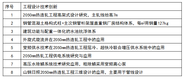 我院在設計過程中進行了多項創(chuàng)新研究,并得以成功應用。多項設計成果獲得2019年度山東省工程勘察設計成果競賽一等獎、山東省冶金科技進步獎一等獎等科技進步獎和勘察設計獎。其中“熱連軋工程高架式設計研究與應用”經專家鑒定為國內外首臺套,技術達到了國際先進水平。