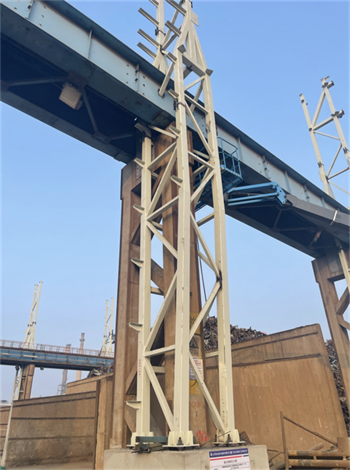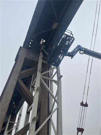 項(xiàng)目開工后,項(xiàng)目部將施工圖與現(xiàn)場實(shí)際巧妙結(jié)合,立足保證原棧橋系統(tǒng)完整、獨(dú)立運(yùn)行為宗旨,攻克多項(xiàng)改造重點(diǎn)、難點(diǎn)。如利舊原有承臺短柱、鋼柱貫穿制動(dòng)板現(xiàn)場加固、斜桿穿吊車梁腹板并規(guī)避電纜橋架等障礙物、大跨度屋面桁架梁跨外吊裝等。提前策劃好每個(gè)節(jié)點(diǎn),做到現(xiàn)場施工完全落實(shí)設(shè)計(jì)意圖,實(shí)現(xiàn)了結(jié)構(gòu)安全、質(zhì)量可靠、進(jìn)度可控、經(jīng)濟(jì)合理。