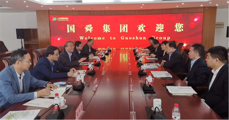 3月10 日,公司董事長魏新民、總經理衣忠德、常務副總劉春青、副院長/采購中心主任吳兆軍、副院長/山東耀華能源常務副總劉道慶、副院長/辦公室主任高峰以及節能環保分公司有關人員到山東國舜建設集團有限公司參觀交流。國舜集團黨總支書記呂和武、董事長孫德山,副總經理楊東紅、馮超、呂和興,環保設計院院長尹鵬等陪同參考,并進行了座談交流。